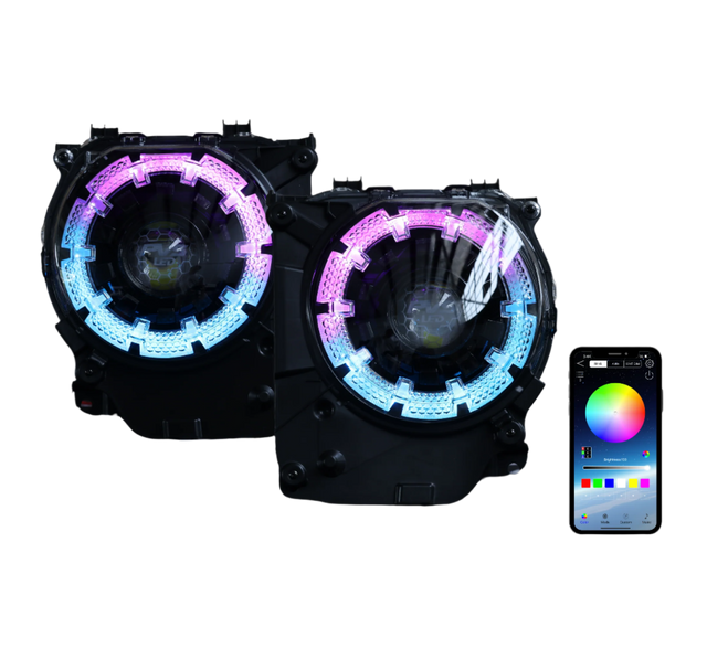 Complete RGB LED Headlight Assembly (Pair) – Fully pre-built and ready for direct installation